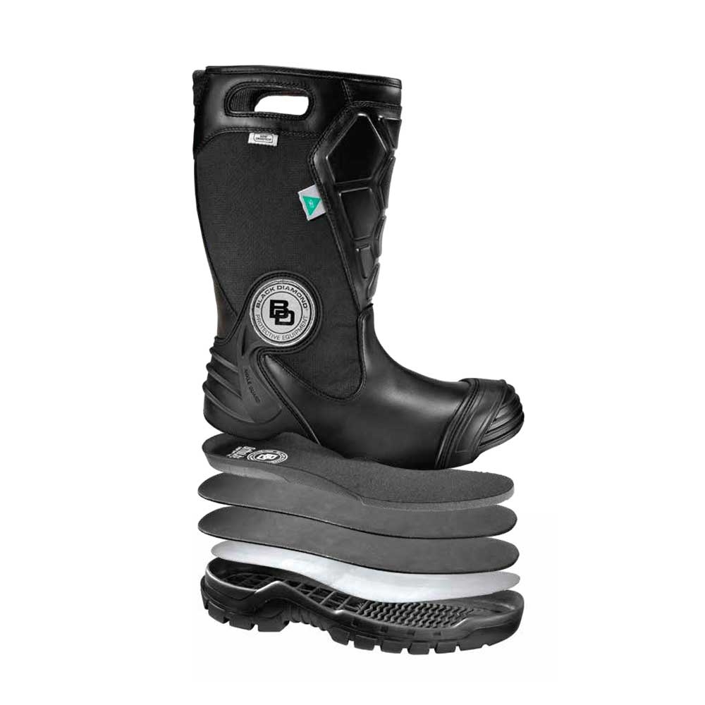 Les bottes d’incendie structurel en cuir de Black Diamond, modèle X2, sont fabriquées à partir de véritable cuir ignifuge et de tissu Fusion pour offrir une protection ultra-durable. Dotées d’une membrane imperméable CROSSTECH et d’un design sans doublure amovible, elles assurent un confort exceptionnel grâce à la semelle intérieure Comfort Fit Plus Ortholite™.