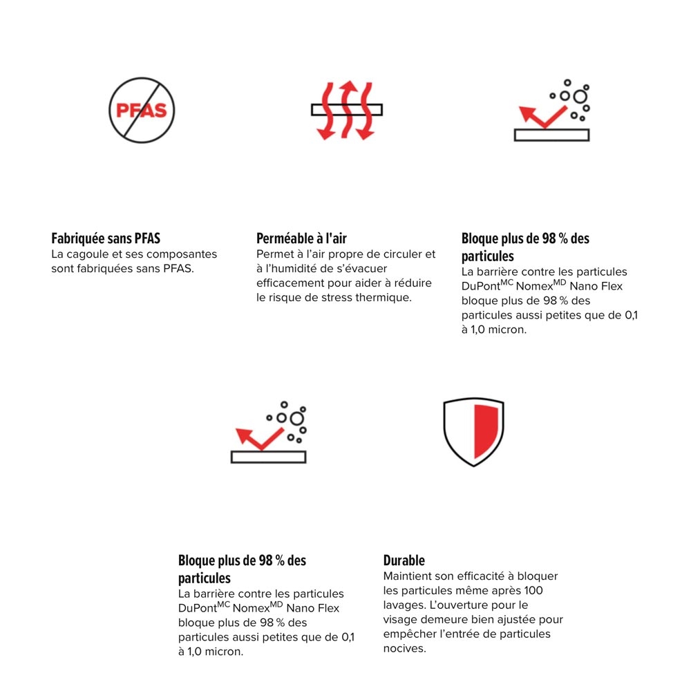 La nouvelle cagoule GRAY Stedair Clear 25, fabriquée sans PFAS, offre une protection avancée contre les particules toxiques. Conçue avec une barrière anti-particules à base de nanofibres, elle bloque efficacement 98 % des particules toxiques tout en garantissant une couverture totale et un confort optimal.
