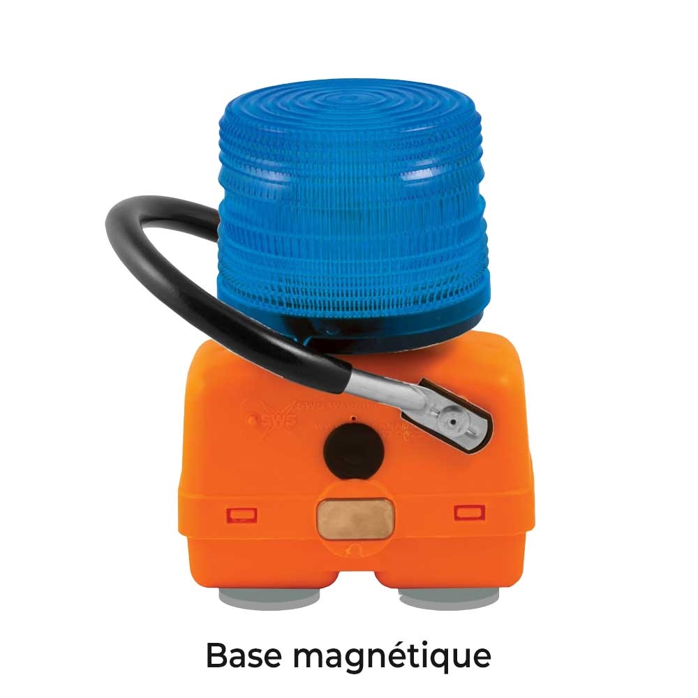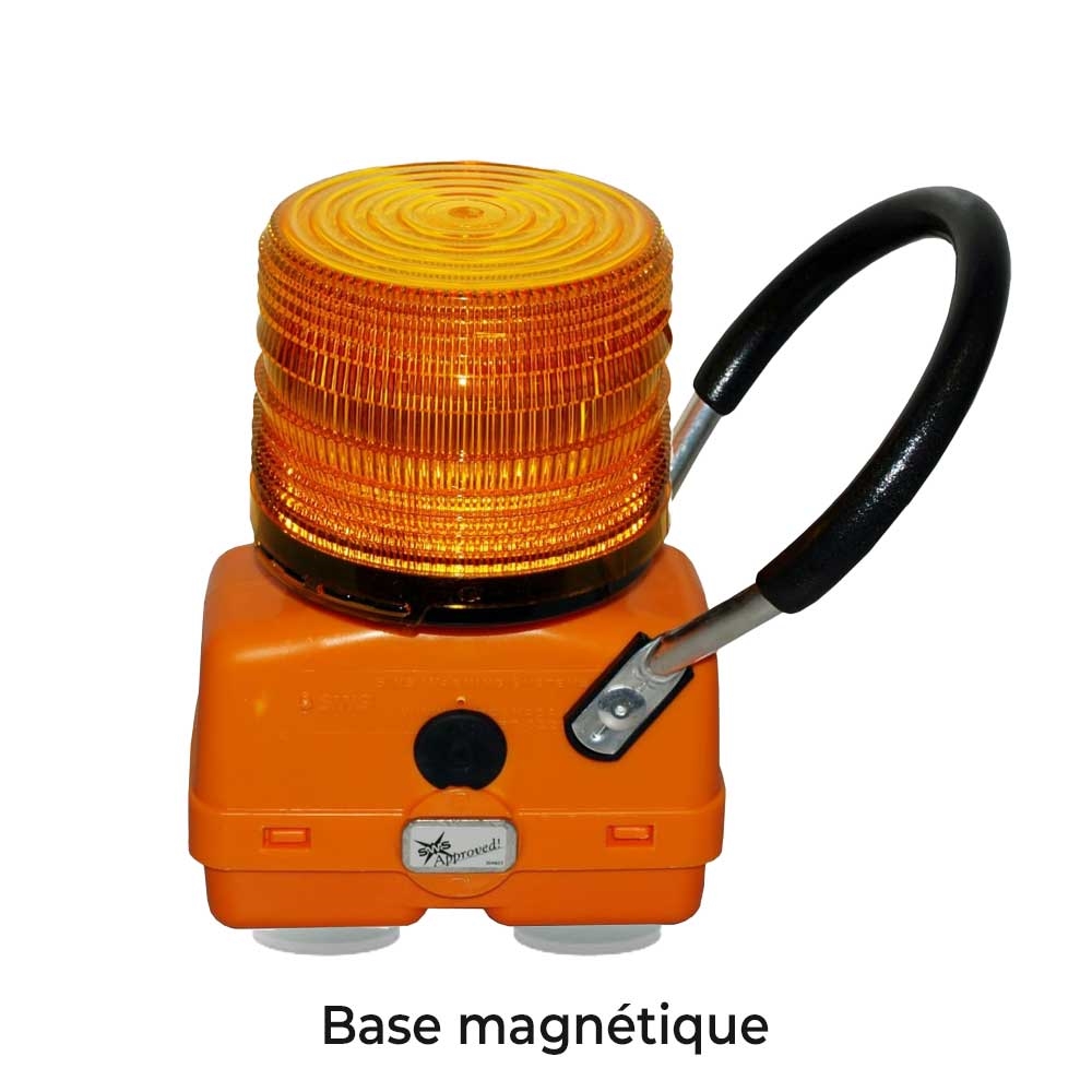 Lampe de sécurité portative, résistante avec lumière au DEL et mode régulier ou stroboscopique. Disponible avec une base régulière ou une base magnétique.