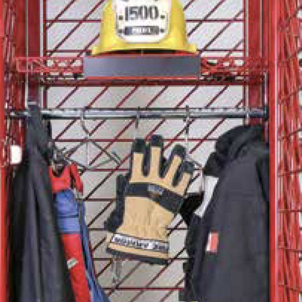 Support pour suspendre une paire de gants ou deux cagoules ou encore tout autre équipement. Compatible avec les casiers Red Rack. Dimension : 17 5/8” x 4” x 6”